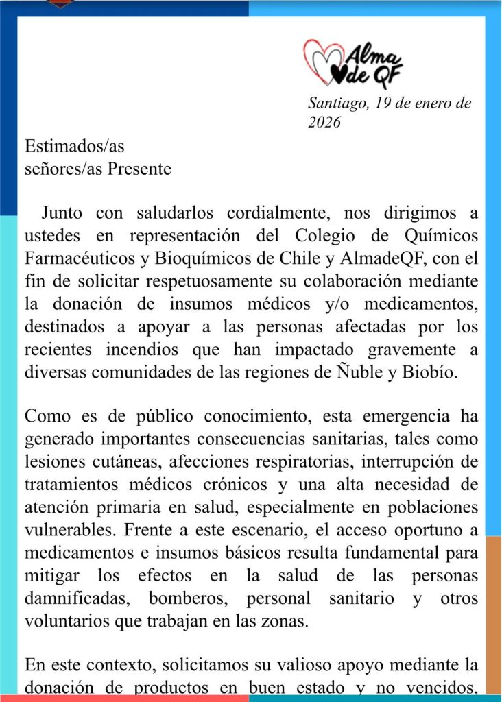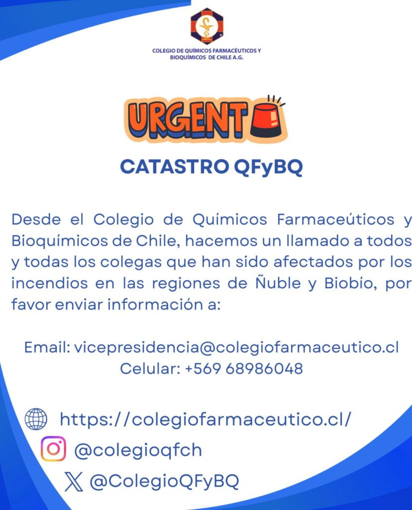 Como Directorio Nacional, nos hemos movilizado para ir en ayuda de los afectados por los graves incendios en la zona sur de Chile. Para maximizar nuestro aporte, solicitamos su colaboración a través de sus redes de contacto.