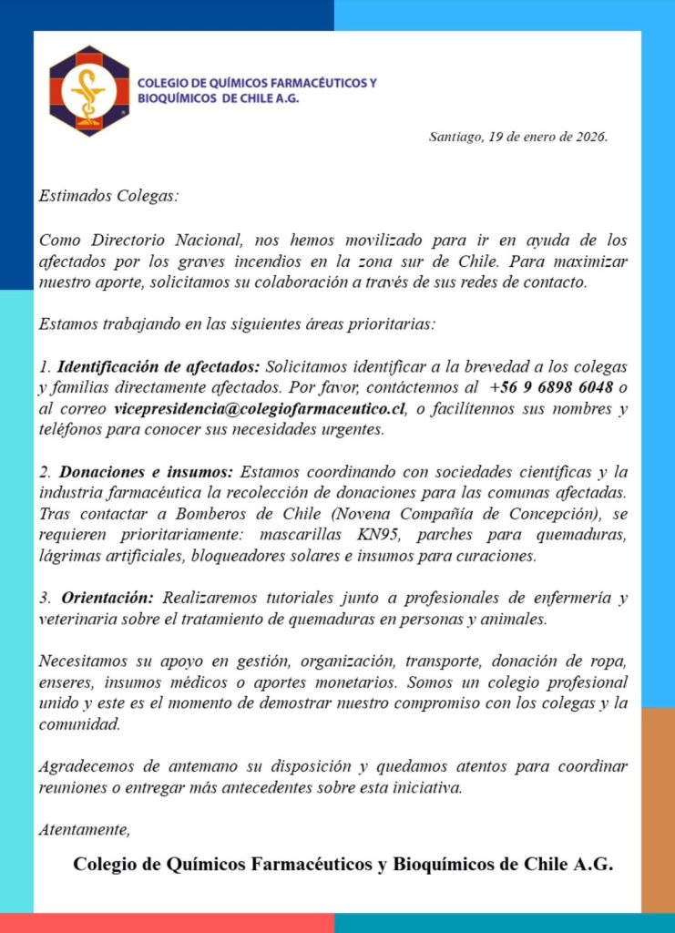 Como Directorio Nacional, nos hemos movilizado para ir en ayuda de los afectados por los graves incendios en la zona sur de Chile. Para maximizar nuestro aporte, solicitamos su colaboración a través de sus redes de contacto.